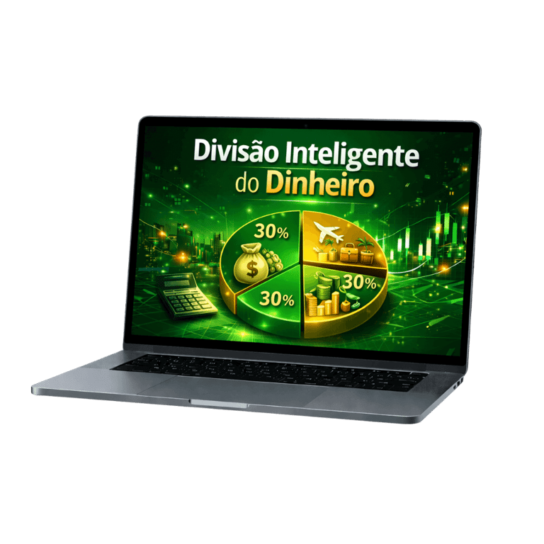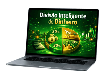 Você receberá um modelo simples de divisão do dinheiro em porcentagens inteligentes, que mostra quanto destinar para contas, lazer, investimentos e futuro — evitando o susto do cartão e o descontrole no fim do mês