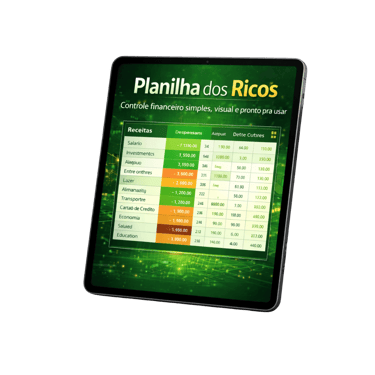 Pare de viver no susto do cartão, e no gasto descontrolado descubra como fazer o dinheiro sobrar todo mês usando a Planilha dos Ricos.