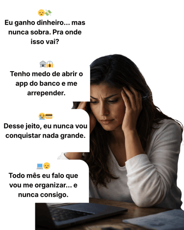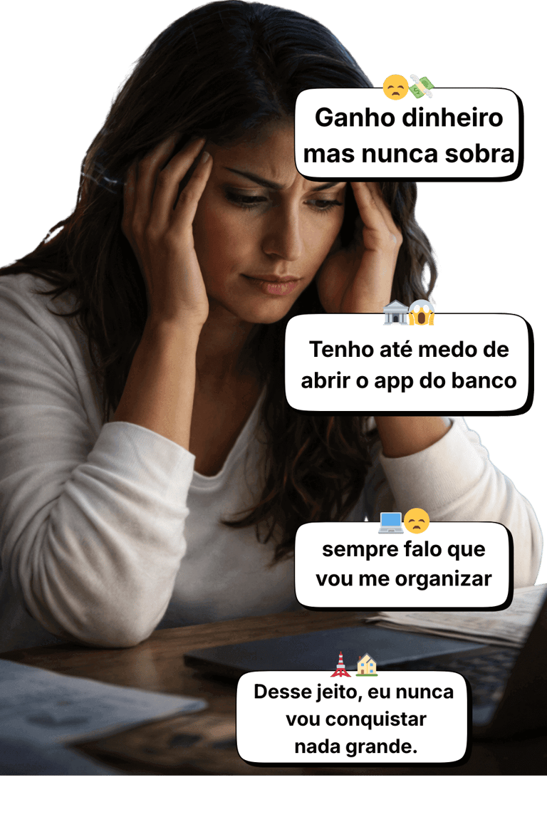 Você receberá um material simples que te ajudará a identificar pensamentos e crenças financeiras que fazem você gastar errado, se desorganizar e chegar todo mês no sufoco — mesmo tentando fazer o certo.