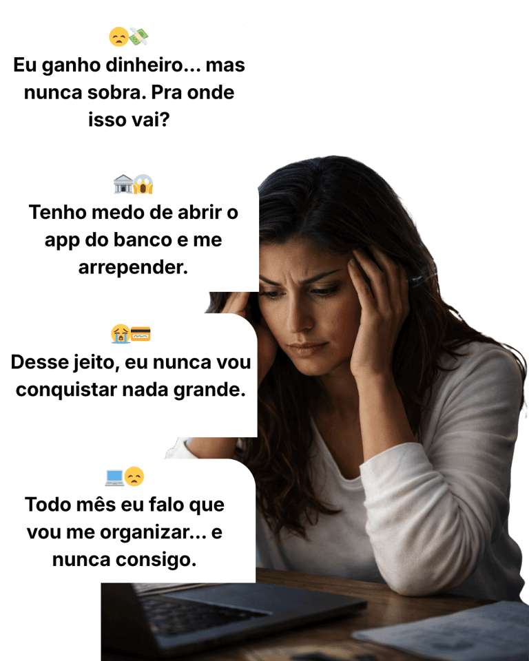 Isso só acontece porque você não tem um método financeiro eficaz e fica usando as notas do celular, aplicativos gratuitos e outras ferramentas que não funcionam. Desse jeito, você só vai se frustar.